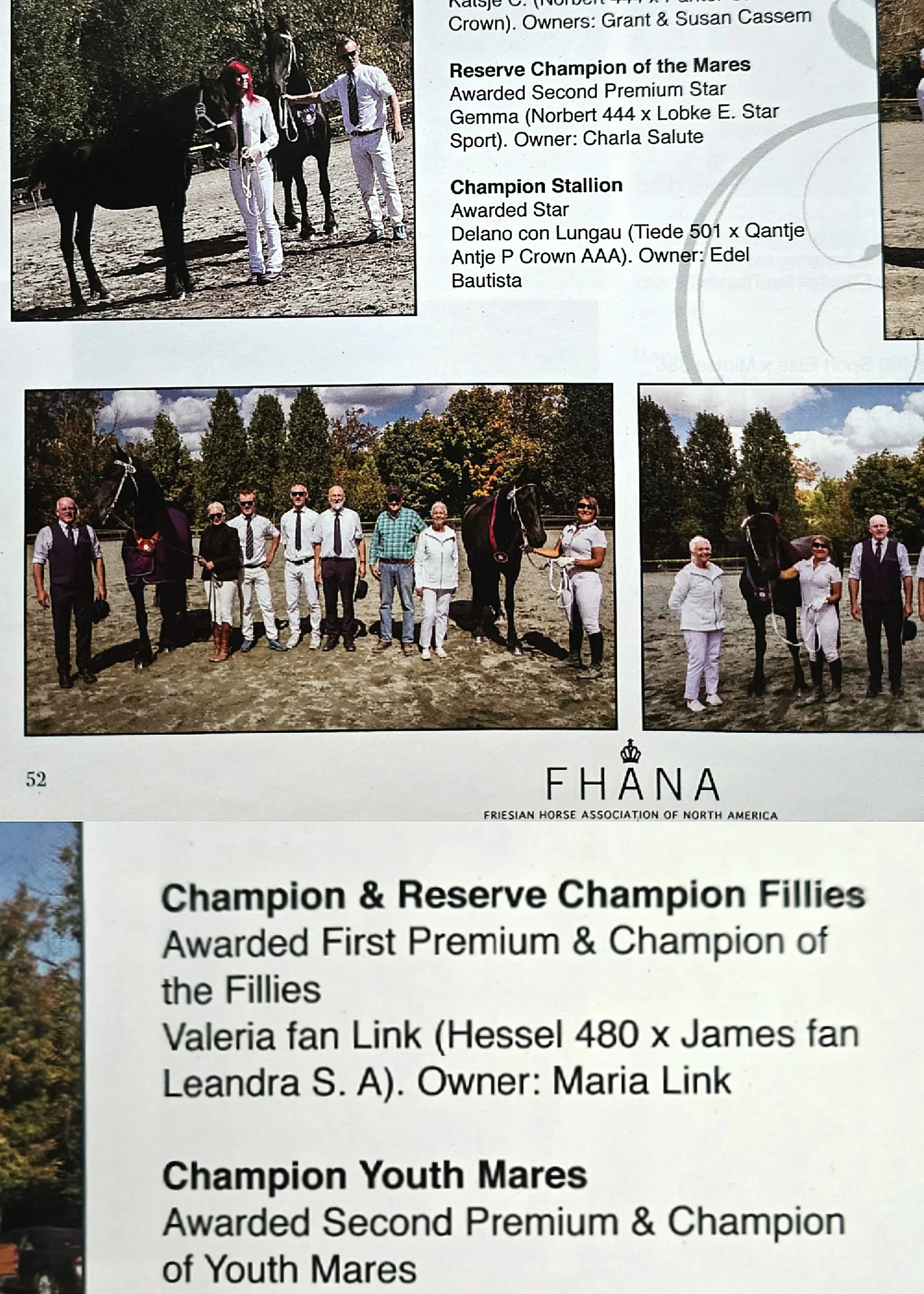 An honor to see Valèria fan Link in The Friesian Magazine after her outstanding 1st Premium & Champion Filly achievement.