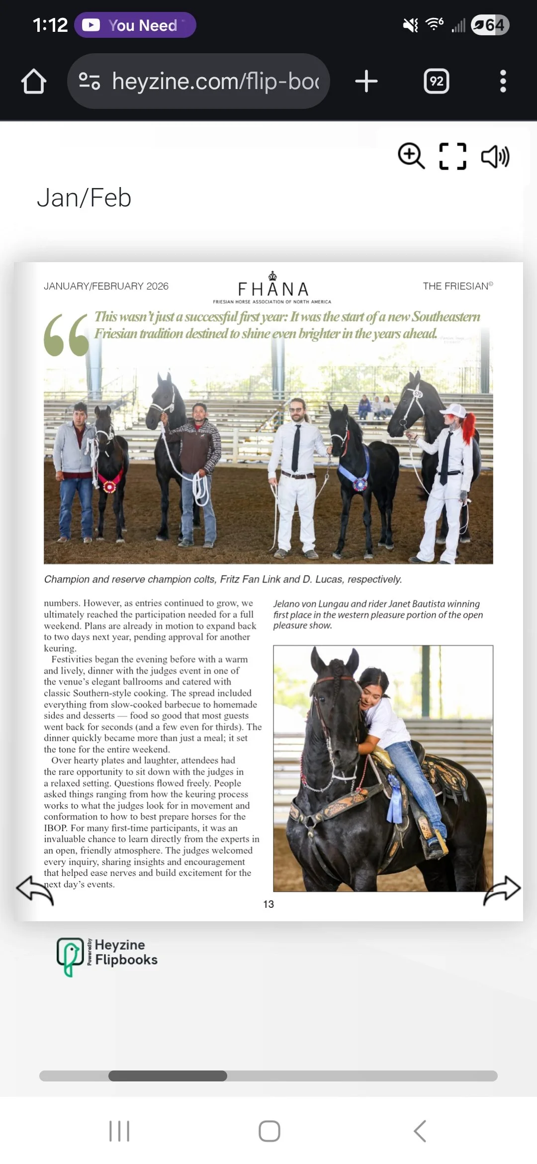 Proudly featured in The Friesian Magazine following his achievement as 1st Premium & Champion Colt at the Southeastern Friesian Festival.