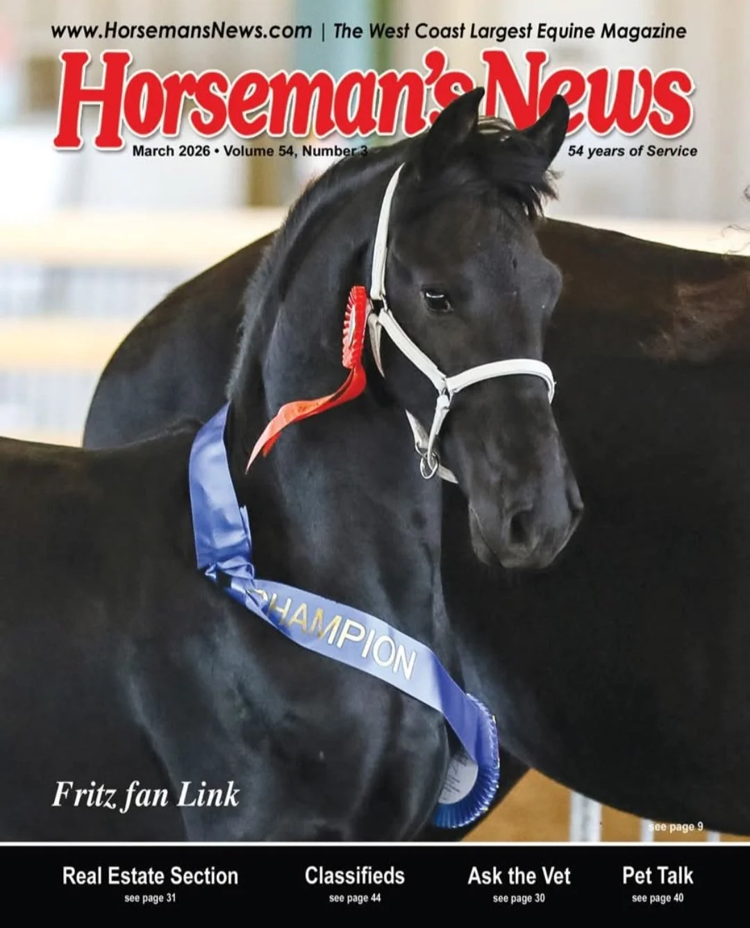 Check out Fritz fan Link on the cover of the March edition Horseman’s News. This exceptional Friesian colt represents the next generation of excellence and we are honored to see him highlighted.